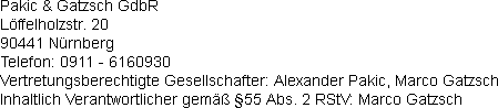 Der Nutzung von im Rahmen der Impressumspflicht veröffentlichten Kontaktdaten durch Dritte zur Übersendung von nicht ausdrücklich angeforderter Werbung und Informationsmaterialien wird hiermit ausdrücklich widersprochen. Die Betreiber der Seiten behalten sich ausdrücklich rechtliche Schritte im Falle der unverlangten Zusendung von Werbeinformationen, etwa durch Spam-Mails, vor.